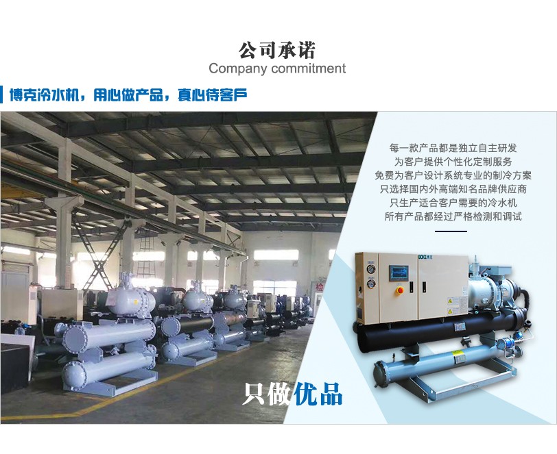 博克冷水機(jī)采用進(jìn)口高端品牌臺灣漢鐘/谷輪/大金壓縮機(jī),其他部分廠家采用普通品牌或二手壓縮機(jī),甚至以小充大,使用不足匹壓縮機(jī)。