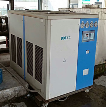 這臺冷水機是2016年8月開始使用的,已經(jīng)用了兩年多,冷水機并不是直接用于冷卻食品,而是通過冷卻中央廚房系統(tǒng)真空冷卻機,再由真空冷卻機去冷卻各種食品。