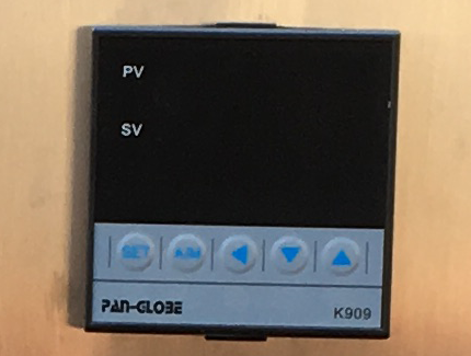 溫控器第一行顯示窗顯示當(dāng)前溫度,溫控器第二行顯示窗顯示當(dāng)前溫度設(shè)定值。按溫控器操作面板上的上下按鍵,增加或減少設(shè)定溫度值。