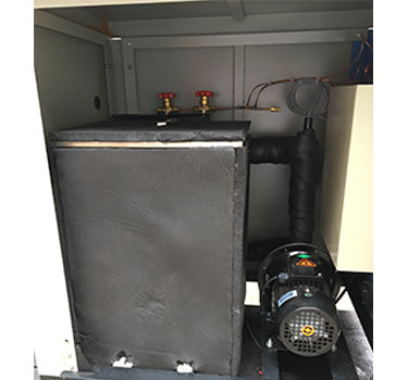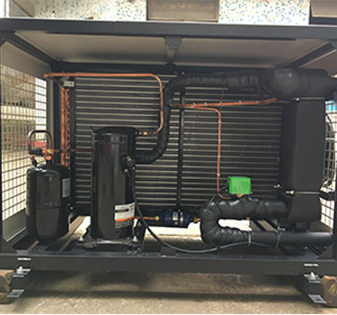 1、機(jī)組采用分體式,制冷系統(tǒng)(壓縮機(jī)、儲(chǔ)液器、蒸發(fā)器、風(fēng)冷冷凝器、冷凝風(fēng)機(jī)、壓力表等)放在室外,水系統(tǒng)和控制系統(tǒng)(水泵、水箱、流量開(kāi)關(guān)、電控箱、操作系統(tǒng)等)放在室內(nèi);