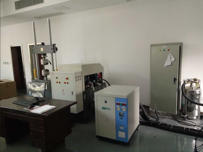 BKLS-F50F21風(fēng)冷分體式冷水機(jī)是專(zhuān)為中科院寧波材料所定制的電液伺服動(dòng)靜萬(wàn)能試驗(yàn)機(jī)冷卻用風(fēng)冷分體式冷水機(jī)。水溫控制范圍5-35℃,控溫精度±0.1℃。因?qū)嶒?yàn)室對(duì)噪音和溫度控制要求比較高,空間有限,冷卻塔安裝位置無(wú),冷水機(jī)采用風(fēng)冷分體式,制冷系統(tǒng)放在室外,水系統(tǒng)和控制系統(tǒng)放在室內(nèi)。