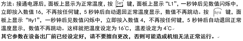 通電后,請(qǐng)?jiān)O(shè)定所需溫度(L1)及溫差值(Hy1啟動(dòng)值)