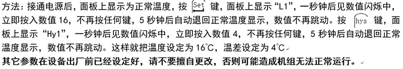 例:將溫度控制在16-20℃,則溫度(L1)設(shè)為16℃,溫差(Hy1)設(shè)為4℃;