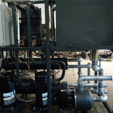 蒸發(fā)器:臺灣高力品牌板式換熱器,比普通的管殼式換熱器和水箱式換熱器制冷量更大,消耗功率反而更低,使用壽命長