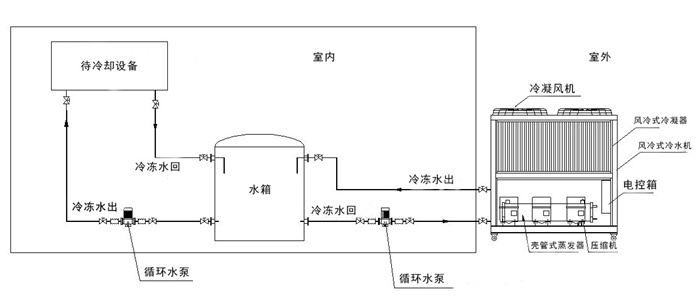 3、機組冷凍側須采用25%(V/V)的乙二醇溶液或19%(m/m)的氯化鈣溶液作防凍劑