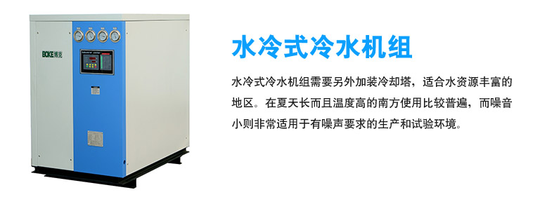 寧波北侖博克冷卻設(shè)備有限公司專業(yè)生產(chǎn)28-150KW制冷量雙機(jī)型水冷箱式工業(yè)冷水機(jī)組,水冷式冷水機(jī)組需要另外加裝冷卻塔,適合水資源豐富的地區(qū)。在夏天長而且溫度高的南方使用比較普遍,而噪音小則非常適用于有噪聲要求的生產(chǎn)和試驗(yàn)環(huán)境。
