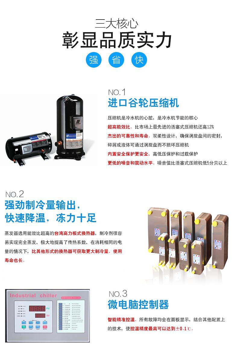 2)采用美國進(jìn)口名牌谷輪壓縮機(jī),內(nèi)置安全保護(hù),制冷系數(shù)大,噪音低,省電耐用,以增加設(shè)備的使用壽命。