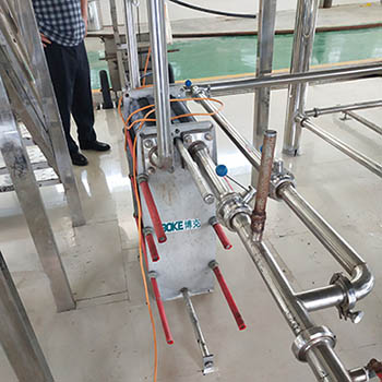 啤酒釀造生產(chǎn)線低溫冷水機(jī)主要用于麥汁冷卻系統(tǒng)釀造水降溫和發(fā)酵系統(tǒng)酒精水降溫用,再配合全不銹鋼麥汁板式換熱器把物料降到工藝要求的溫度,能有效降低啤酒生產(chǎn)線制冷站能耗。
