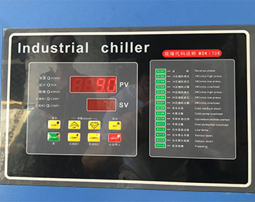 2)微電腦溫度自動(dòng)控制。逆相、壓縮機(jī)高壓、壓縮機(jī)低壓、壓縮機(jī)過(guò)載、水泵過(guò)載、冷卻水流/過(guò)熱、冷凍水溫過(guò)低、防凍等故障均會(huì)在面板顯示。面板顯示溫度設(shè)定值及當(dāng)前溫度值。外形美觀,設(shè)置方便。