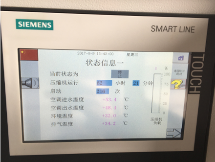 5、人機界面:機組采用西門子觸摸式液晶顯示屏,中英文人機界面,操作程序簡潔,一鍵啟動,自動運行。