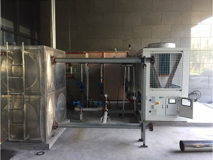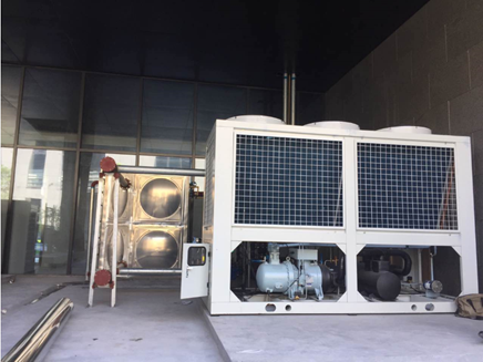 擠出機生產(chǎn)線用風(fēng)冷螺桿式冷水機現(xiàn)場實拍圖