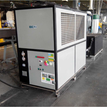 擠出機(jī)冷卻用冷水機(jī)大小與擠出機(jī)的押出量、生產(chǎn)線線速相關(guān)。當(dāng)水資源缺乏、水質(zhì)較差或安裝空間有限時(shí)可選用風(fēng)冷式冷水機(jī)。博克可以根據(jù)您的實(shí)際工況免費(fèi)為您定制最適合的制冷方案,并提供一站式服務(wù),為您省心。博克箱式冷水機(jī)規(guī)格齊全,制冷量范圍8-100KW(更大制冷可選用博克螺桿式冷水機(jī)),除R22外,可選用R134A/R407C/R404A等多種環(huán)保制冷劑。