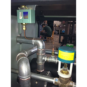 本款冷水機(jī)還增加了水壓泄壓回流、低液位報(bào)警、水壓低報(bào)警、故障聲光報(bào)警、主電路空開和控制回路空開保護(hù)等保護(hù)和控制要求。