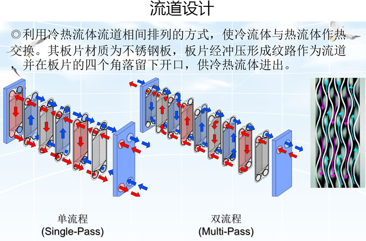 ● 使用壽命長:板式換熱器采用不銹鋼板片壓制,可耐各種腐蝕介質(zhì),膠墊可隨意更換,并可方便在、拆裝檢修。