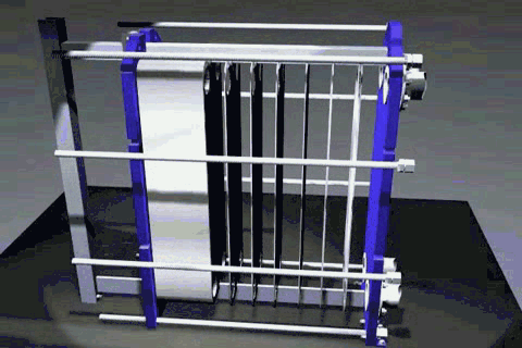板式換熱器是由一組波紋金屬板組成,板上有四個(gè)角孔,供傳熱的兩種流體通過。金屬板片安裝在一個(gè)側(cè)面有固定板和活動(dòng)板的框架內(nèi),并用夾緊栓夾緊。板片上裝有密封墊片,將流體通道密封,并且引導(dǎo)流體交替地流至各自的通道內(nèi),形成熱交換。流體的流量、物理性質(zhì)、壓力降和溫度差決定了板片的數(shù)量和尺寸。波紋板不僅提高了湍流程度,并且形成許多支撐點(diǎn),足以承受介質(zhì)間的壓力差。金屬板和活動(dòng)壓緊板懸掛在上導(dǎo)桿,并由下導(dǎo)桿定位,而桿端則固定在支撐柱上,由于具備高性能、省空間、省能源、維護(hù)簡單等許多優(yōu)點(diǎn),板式換熱器已獲得各產(chǎn)業(yè)的高度肯定。