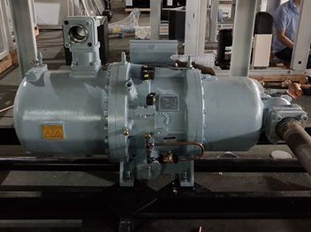 1)采用國際先進的半封閉5:6非對稱雙螺桿壓縮機,電機、壓縮室一體化,無軸封滲漏現(xiàn)象;