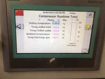 7)自動檢測出水溫度或回水溫度,通過控制壓縮機容量調(diào)節(jié)滑閥,自動調(diào)節(jié)機組的制冷量,運行更加節(jié)能高效。