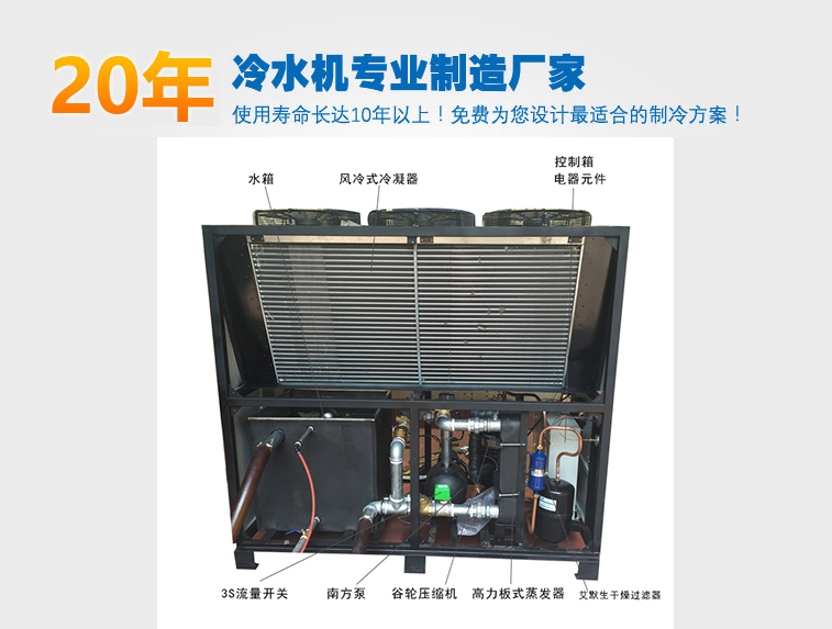 8) 冷水機(jī)采用人性化設(shè)計(jì),其冷量充足且體積小、結(jié)構(gòu)合理、外型美觀、操作方便。