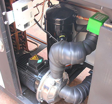 2)采用進(jìn)口谷輪壓縮機(jī),內(nèi)置安全保護(hù),制冷系數(shù)大,噪音低,省電耐用,以增加設(shè)備的使用壽命。