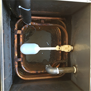 采用不銹鋼水箱銅盤管式蒸發(fā)器(油冷卻不適合用板式蒸發(fā)器),加厚加長設(shè)計(jì),壽命長,換熱效果好