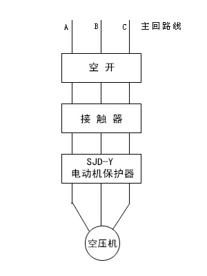 在安裝時,先有三個主回路線進(jìn)空開,從空開出來后接接觸器,從接觸器出來后接電動機保護(hù)器,從保護(hù)器出來后接空壓機。